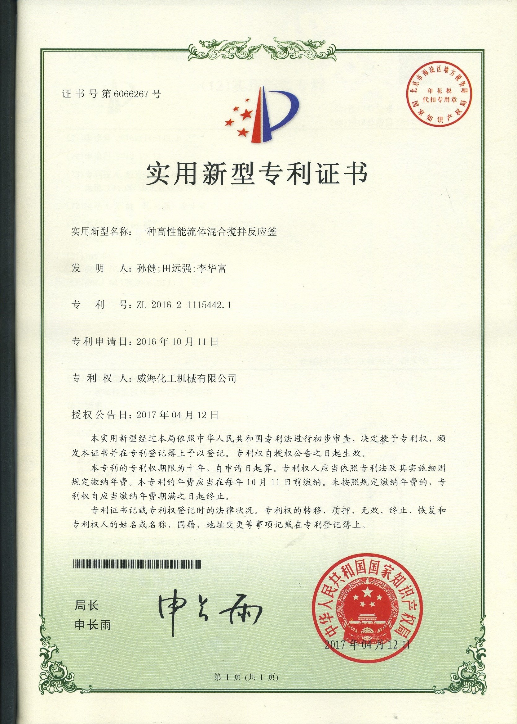 公司建有磁力驅動測試試驗室、攪拌模擬試驗室、反應釜流體混合攪拌重點實驗室等,科研力量雄厚。截至2024年,公司共承擔近280項自主/合作開發任務,先后承擔省級新產品開發任務25項,其中23項產品已達到國內水平。獲得各類省、市級技術創新獎30余項;參與起草、修訂標準共8項,GB/T30098-2013實驗室用磁力驅動反應釜標準、HG/T3648-2011磁力驅動反應釜標準、GB/T29254-2012實驗室反應釜用控制器標準、NB/T47002.1~47002.4-2019壓力容器用復合板;已獲得授權專利95項,其中發明專利19項,實用新型專利69項,外觀專利7項;擁有專有技術和核心技術40余項。
